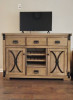 Sturdy, Spacious, Rustic Farmhouse style Wooden TV cabinet/ Server table for Sale: $299 ( Negotiable ) Table made of good quality heavy wood & not light-weight mdf. Table Dimensions: 56" length 17" width & 38" height. Location: hermitage, Tennessee Sharayu +18626847516